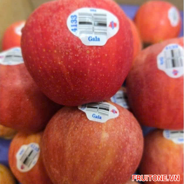 Táo Gala Mỹ: Vỏ sọc đỏ trên nền vàng kem, táo khá giòn và ngọt , thơm
